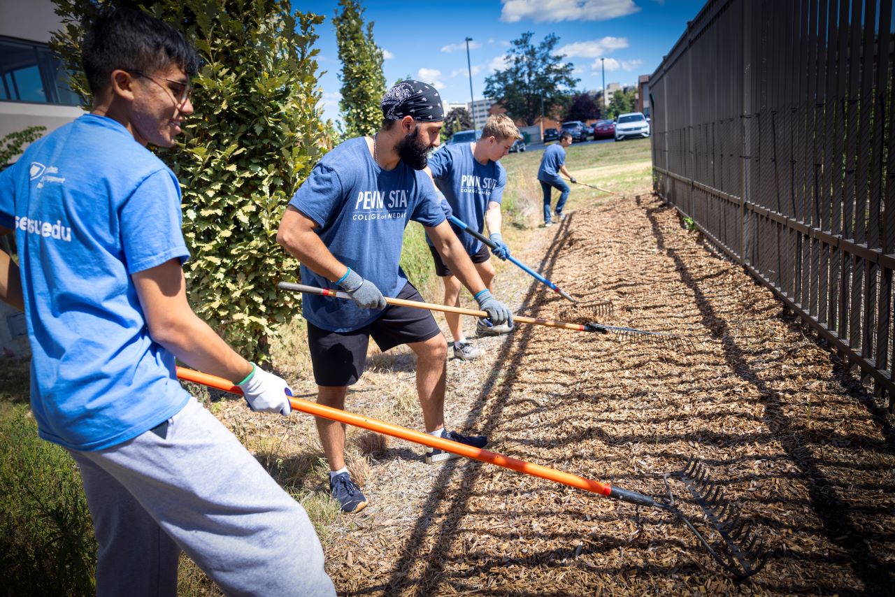 First-year medical students from Penn State College of Medicine volunteer in the Hershey Community Gardens during Community Giveback Week on Monday, Sept. 8.