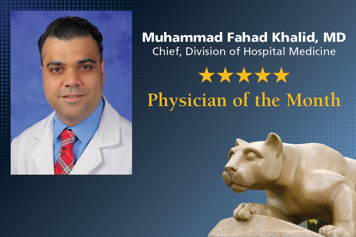 “Dr. Khalid leads by example,” a nominator wrote. “He does the job he asks of others, and exemplifies what it is to be a caring individual. His ability to relate to others and to truly value them as individuals sets him apart. He is an advocate, an ally to anyone who needs. He is honest, professional and personable. He is an asset to the Penn State Health team and more than deserving of Physician of the Month.”